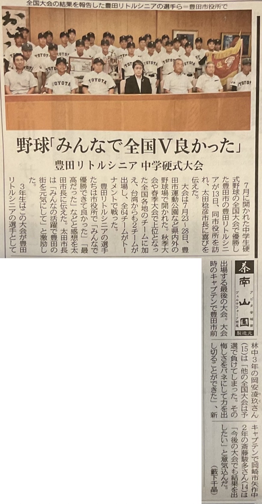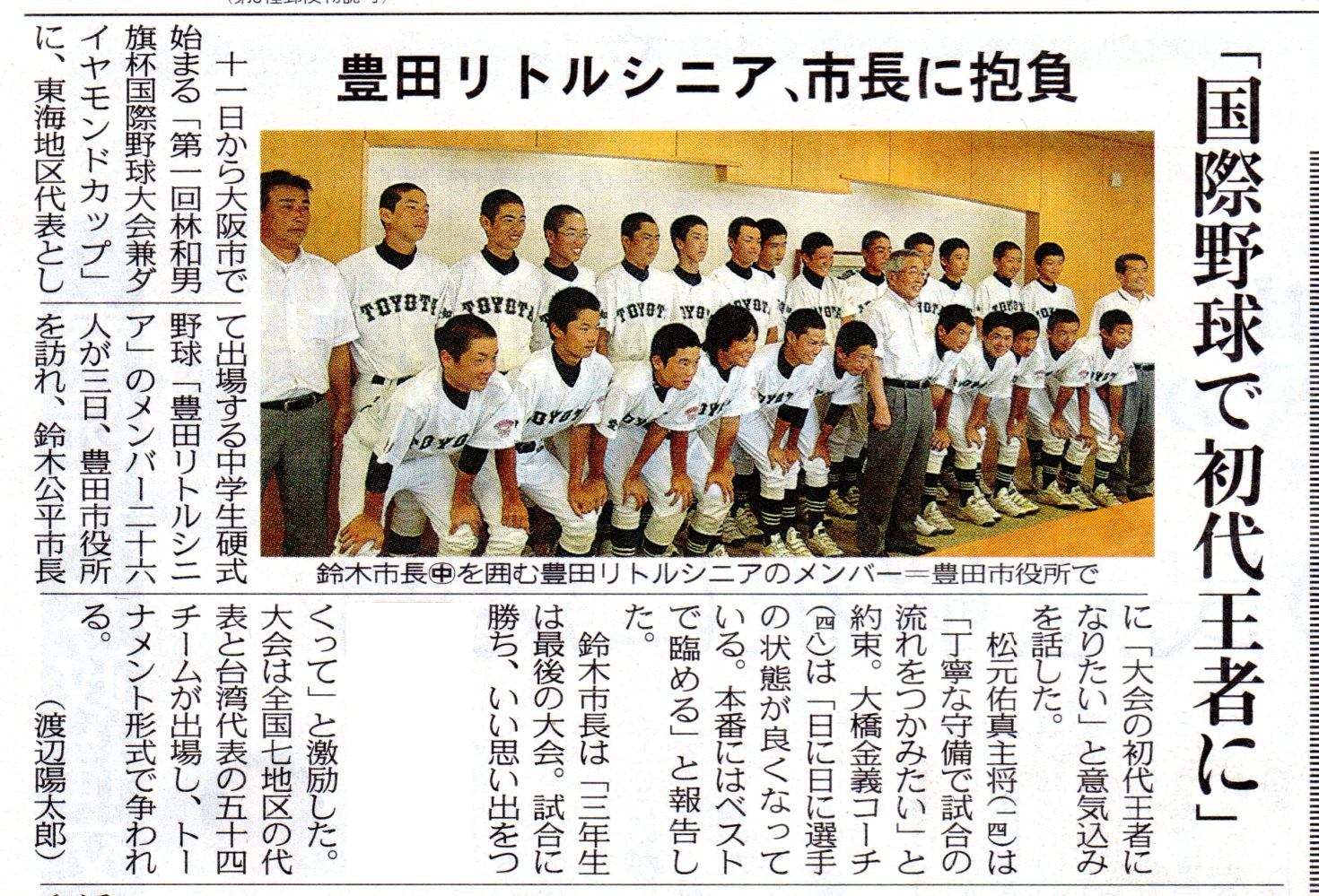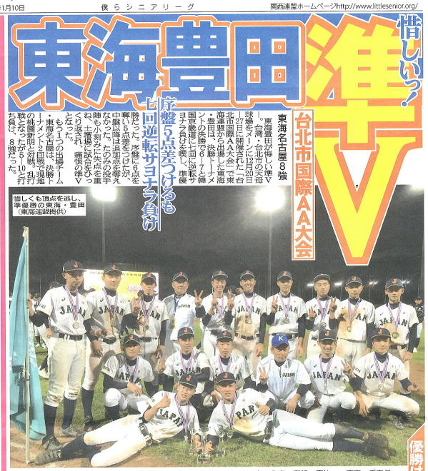 第31回日本リトルシニア全国選抜野球大会 豊田シニア掲載記事