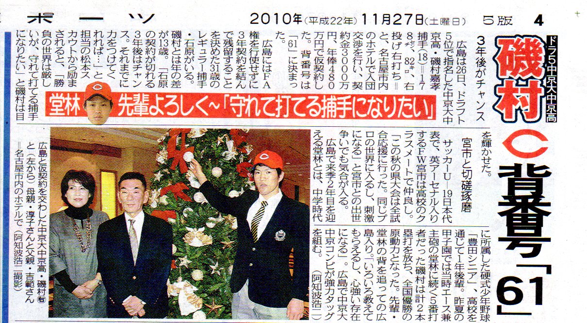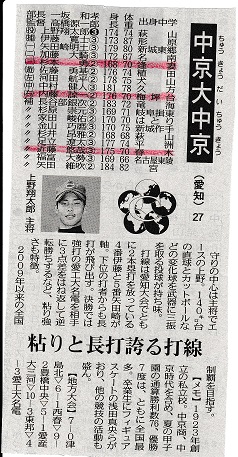 中日スポーツ特集記事 豊田シニアOB 前川大翔選手